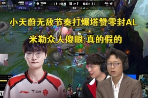 米勒众人看TES大爆冷零封AL:卧槽真的假的,塔赞被小天打爆了。