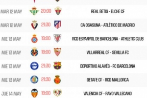 体育资讯4月21日讯 西甲官方公布了第36轮赛程安排,马竞、巴萨和皇马将分别在北京时间5月13日、14日和15日凌晨出战。