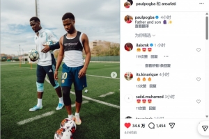 博格巴搞怪地写道:“父与子。”